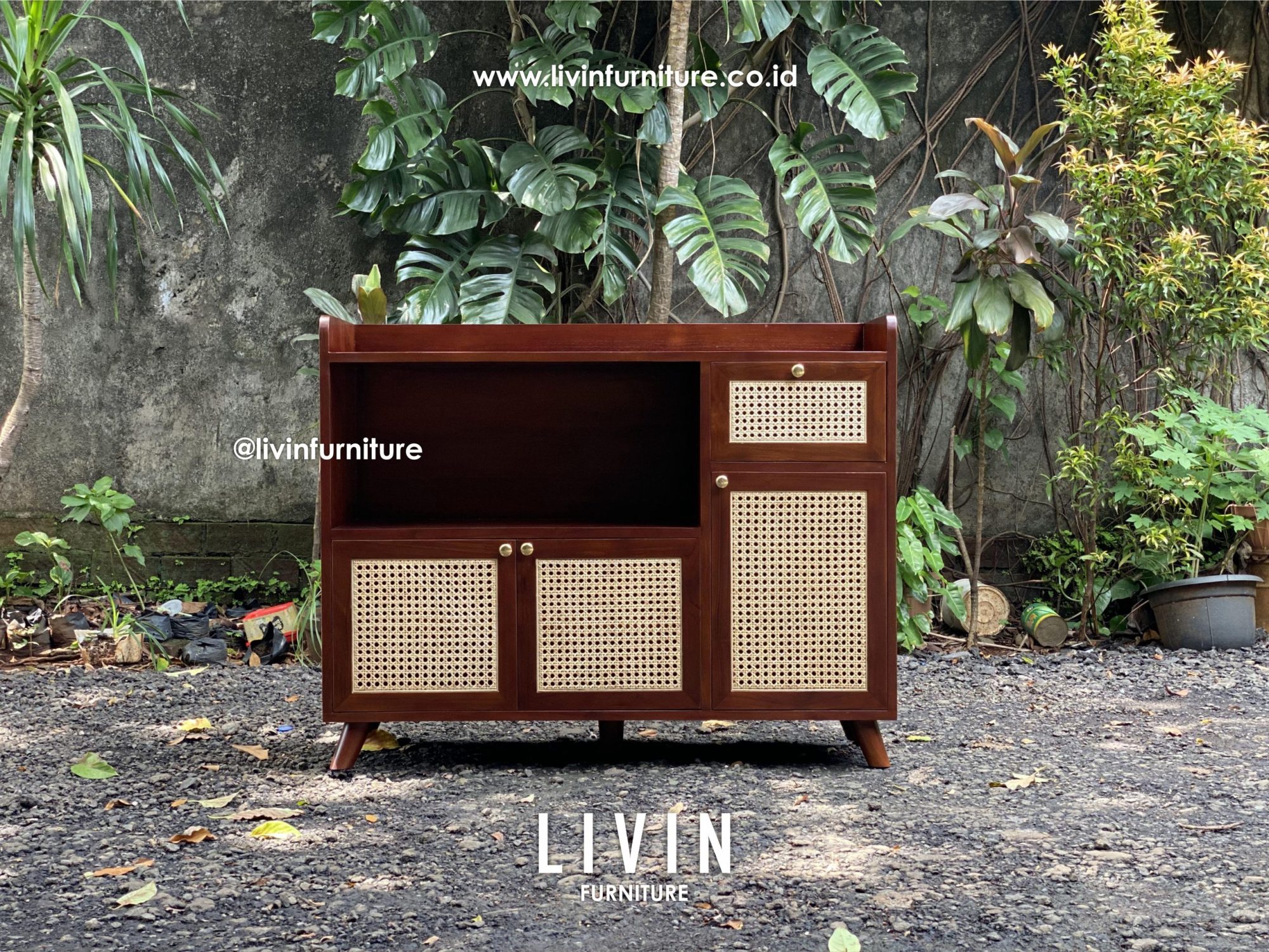 Kabinet Jati Rotan 3 Pintu 2 Laci Klasik Minimalis Terbaru merupakan produk kabinet jati dengan tampilan model terbaru. Kabinet jati ini diproduksi menggunakan bahan material pilihan dengan kualitas premium, sehingga menghasilkan kualitas produk yang kami produksi menjadi bagus, kokoh dan tahan lama . Kami merekomendasikan untuk membeli produk bufet di Livin Furniture Jepara .