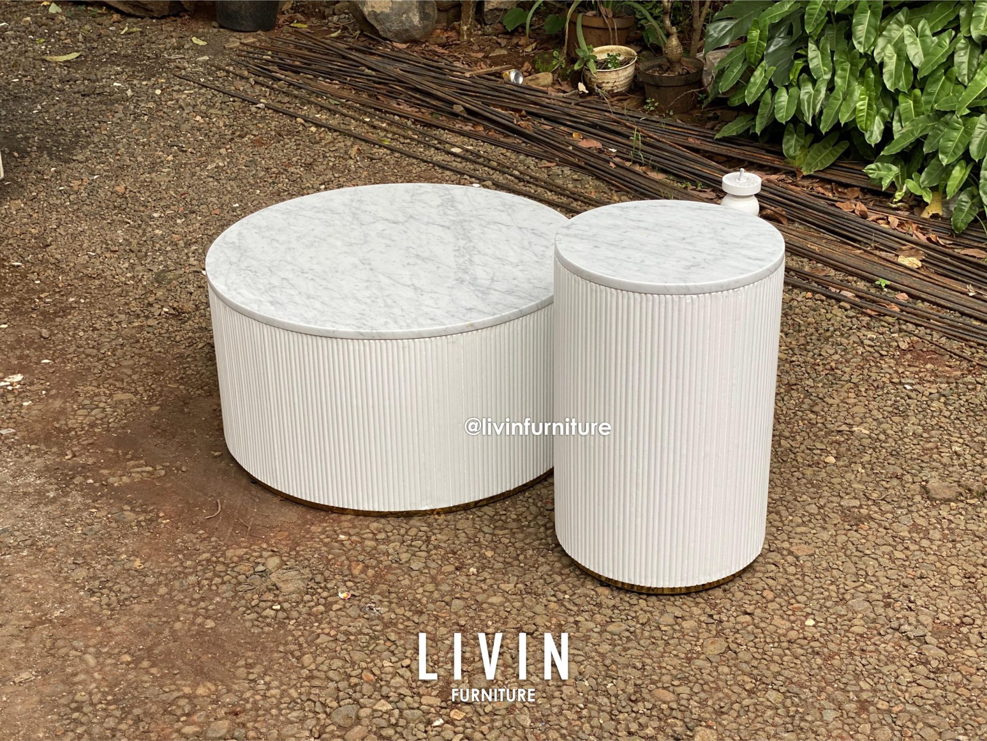 Meja Tamu Bulat Salur Putih Marmer Cararra Modern Mewah Terbaru merupakan produk meja tamu dengan tampilan model terbaru. Sofa tamu ini diproduksi menggunakan bahan material pilihan dengan kualitas premium, sehingga menghasilkan kualitas produk yang kami produksi menjadi bagus, kokoh dan tahan lama . Kami merekomendasikan untuk membeli produk meja tamu di Livin Furniture Jepara .