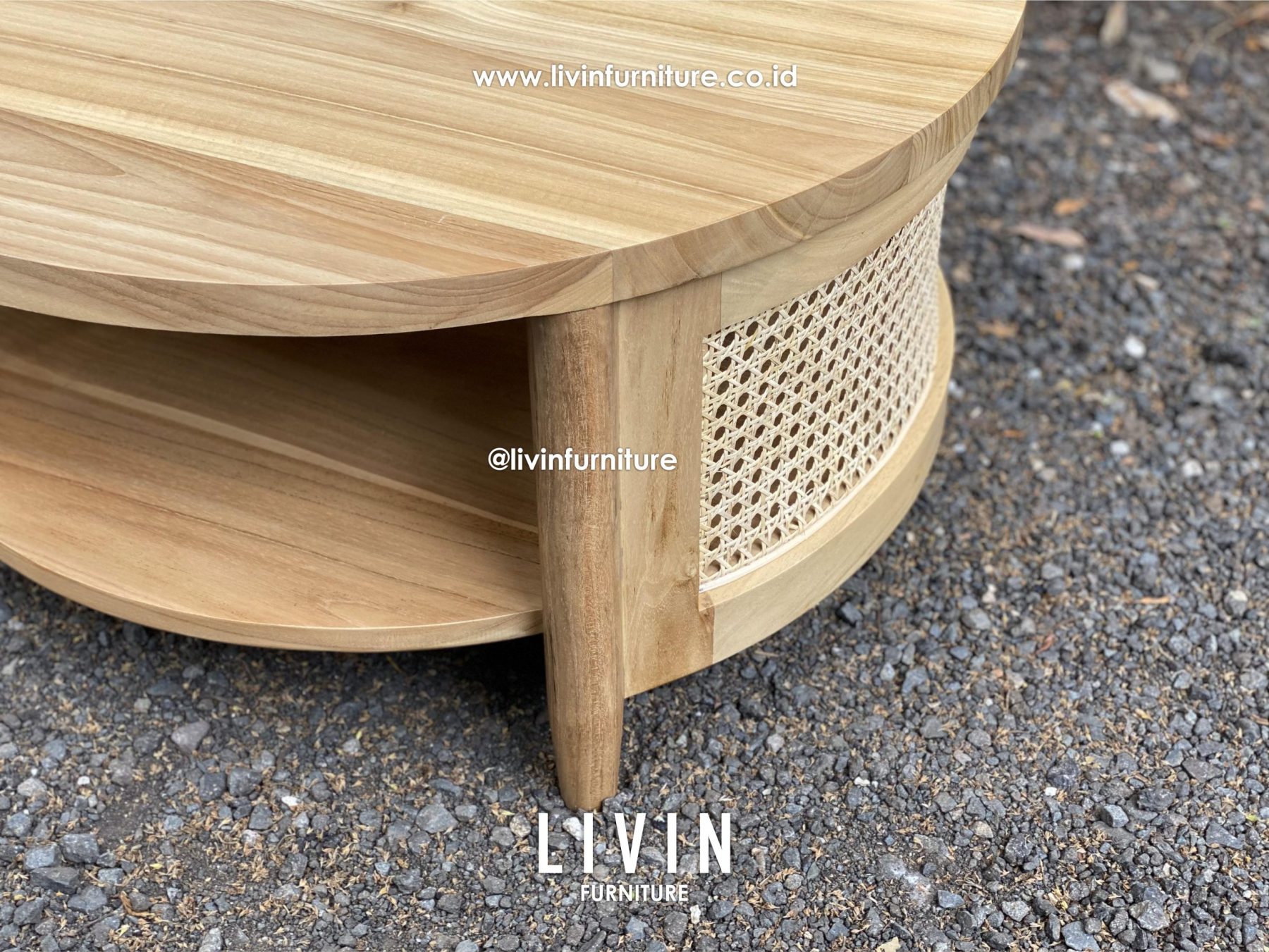 Spesifikasi Meja Tamu Jati Rotan Bundar Bulat Modern Minimalis :